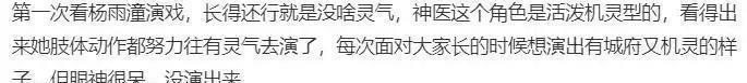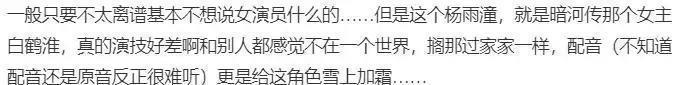 镜头突然转换,落在了杨雨潼的身上,没什么好想说的了 ,难道新一批的演员都有这样的问题吗 ,仅仅只是维持自身的外貌 ,而却不存在着任何的基本技能!